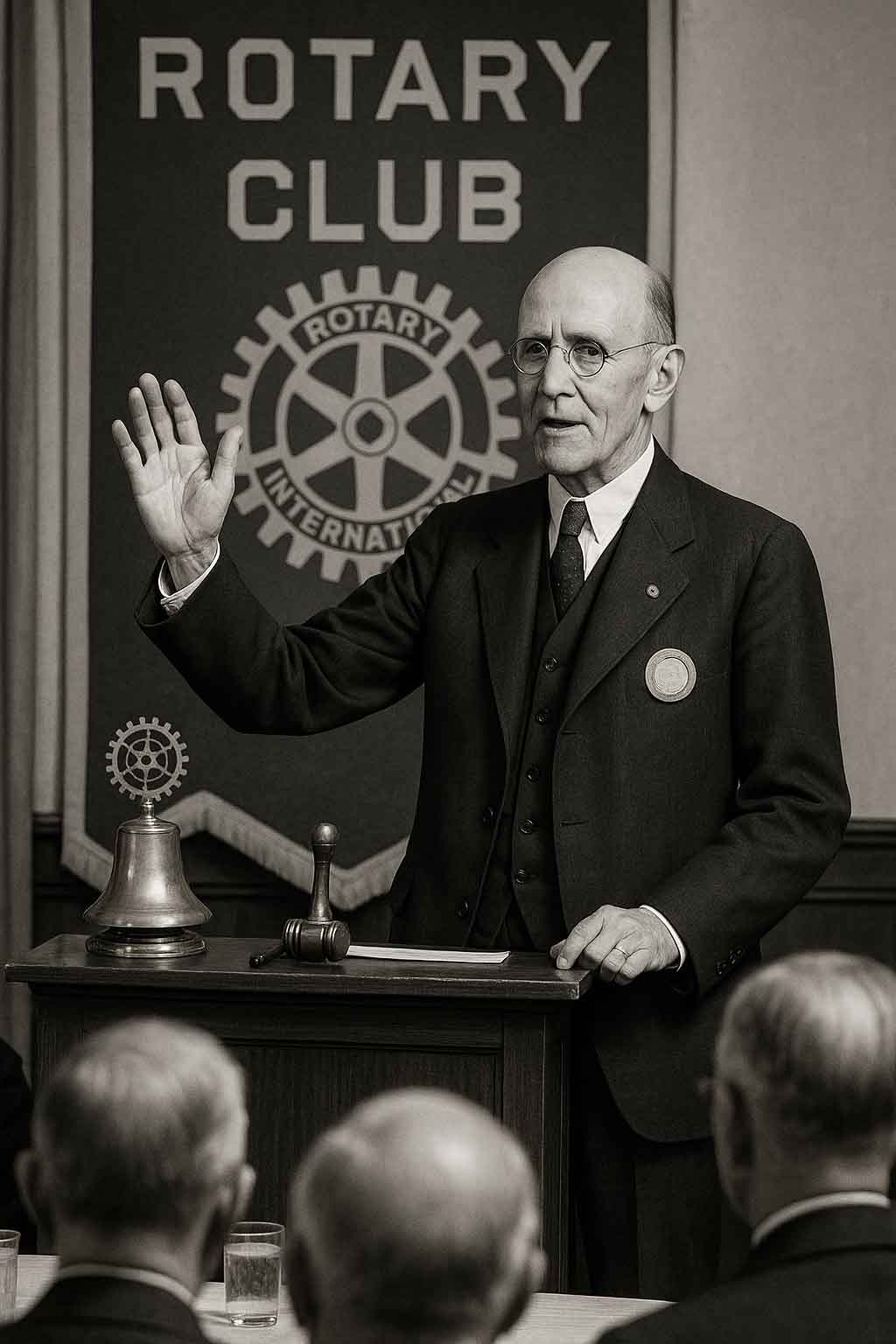 Paul P. Harris – Fondateur du Rotary International en 1905. Avocat à Chicago, il a eu l'idée d'un club réunissant des professionnels de divers horizons afin d'échanger des idées et de tisser des amitiés sincères.
