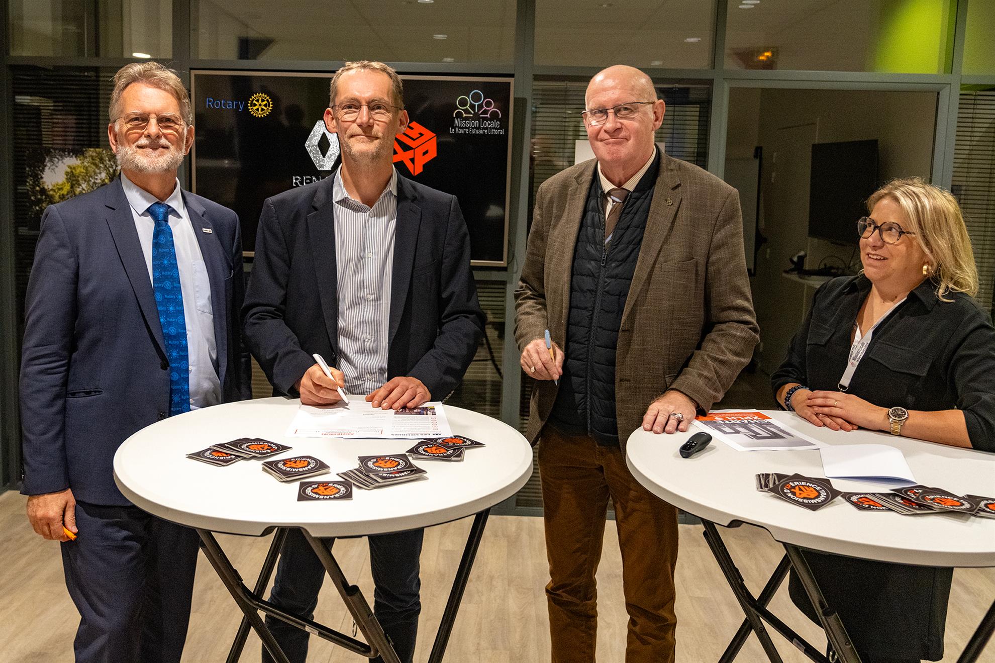Sur les photos, de gauche à droite : Gilles Battier (Rotary), Vincent Bonnet (DRH Renault), Pascal Cramoisan (Mission Locale) et Emeline Planchon (Mission Locale).